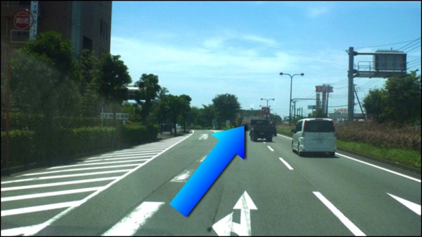 手順3より500mほど進んだ下の写真の場所でも、右車線に進んでください。